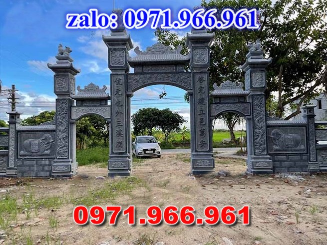 kích thước mẫu cổng bằng đá đẹp - tam quan tứ trụ