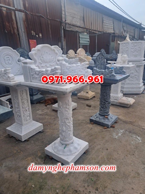 - Kiểu dáng: Các mẫu bàn thờ thiên đá có thể thiết kế đơn giản hoặc cầu kỳ, thường có phần bệ chắc chắn, cột trụ vững chãi và mặt bàn rộng để thờ cúng các vật phẩm thờ cúng.
