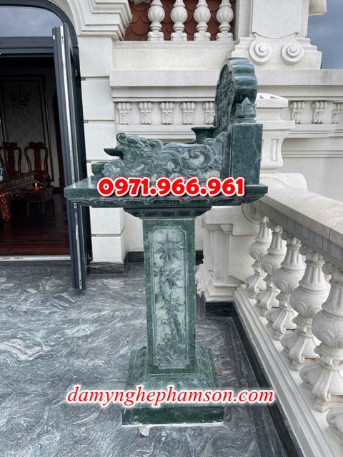 - Bàn thờ ngoài trời: Bàn thờ ngoài trời cần phải đảm bảo tính bền vững trước các yếu tố thời tiết (nắng, mưa, gió), do đó đá phải chịu lực tốt, chống mài mòn và thấm nước. Giá của bàn thờ ngoài trời thường sẽ cao hơn, đặc biệt nếu đá được chọn có khả năng chịu lực và bền lâu.