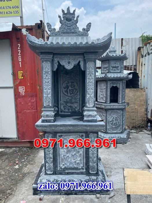 Am thờ ngoài trời được thiết kế, chế tác từ đá xanh tự nhiên, họa tiết hoa văn tinh xảo, sắc nét. Loại đá này được nhập về từ vùng có đá chất lượng tốt như: Nghệ An, Thanh Hóa… khả năng chống chịu bài mòn tốt qua thời gian, có tính thẩm mỹ cao.