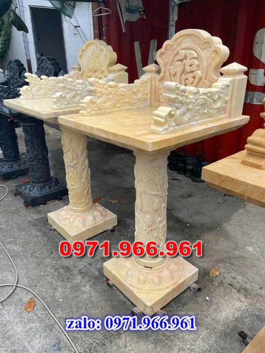 Đặc điểm: Thiết kế đơn giản, gồm một mặt bàn thờ vuông hoặc chữ nhật đặt trên một trụ đá vững chãi. Mặt bàn thường có kích thước từ 60×80 cm đến 89×133 cm.