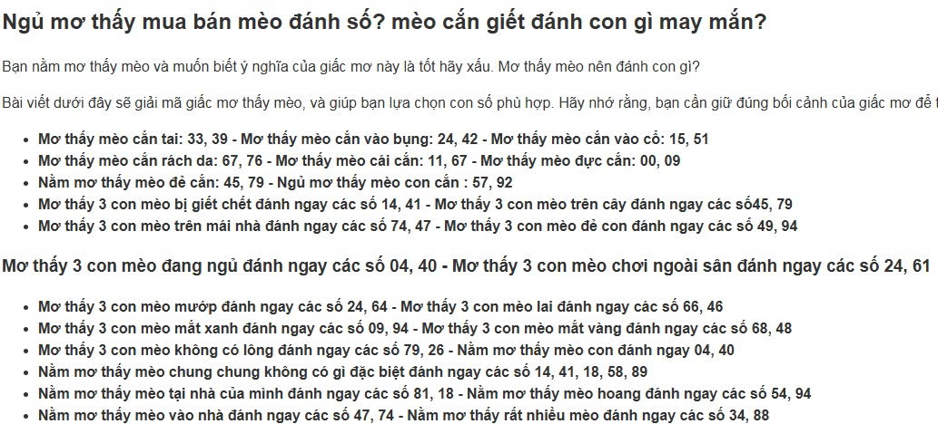 1Ngủ mơ mua bán ăn giết mèo đánh số con gì?