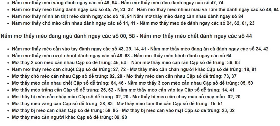 Chiêm bao thấy bị mèo trắng cắn phang ngay số đề: 00