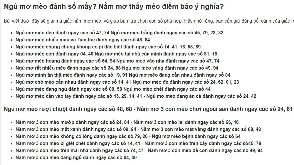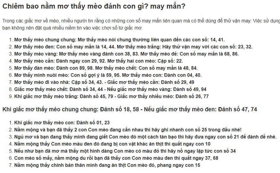 - Nằm mộng thấy mèo chết thì đánh số 44 – Nằm mộng thấy mèo cắn mình thì đánh số 43