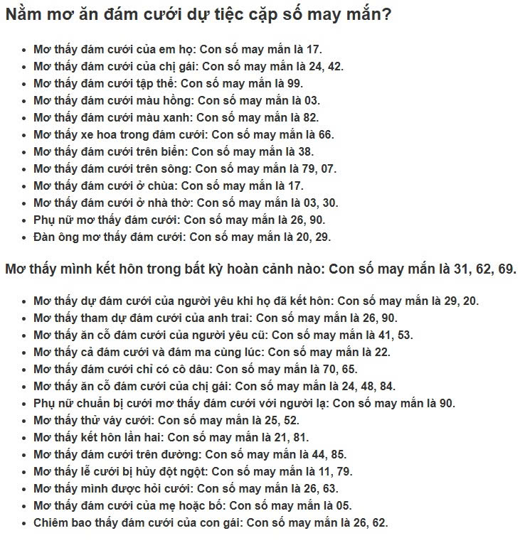 2Giấc mơ ăn đám cưới hỏi của mình hên xui đánh số
