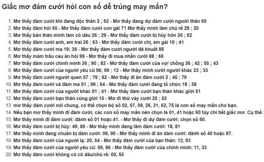 - Nằm mơ thấy đám cưới bạn thân: 12 – Nằm mơ đám cưới của vợ/chồng: 11 – 80