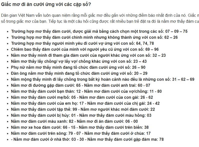 - Trường hợp mơ thấy đám cưới, được giải mã bằng cách chọn một trong các số: 07 – 09 – 75