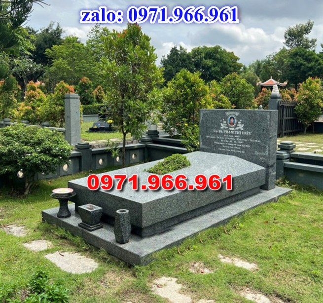 Gia chủ có thể đặt chế tạo mẫu mộ đơn giản mà đẹp với đá xanh Ninh Bình – Thanh Hóa. Đây là loại đá được sử dụng phổ biến nhất tại Việt Nam.