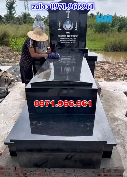 Gia chủ có thể đặt chế tạo mẫu mộ đơn giản mà đẹp với đá xanh Ninh Bình – Thanh Hóa. Đây là loại đá được sử dụng phổ biến nhất tại Việt Nam.