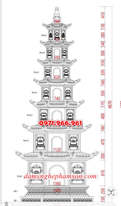 Kích thước mộ tháp, kích thước bảo tháp : Tùy theo nhu cầu, và yêu cầu của khách hàng nhưng kích thước bảo tháp lấy theo phong thủy kích thước lỗ ban 38,8 cm