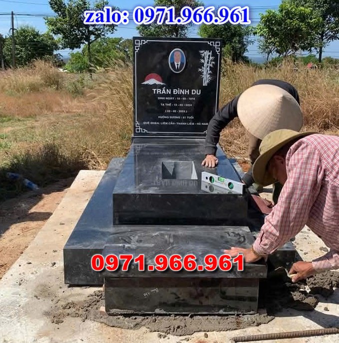 Gia chủ có thể đặt chế tạo mẫu mộ đơn giản mà đẹp với đá xanh Ninh Bình – Thanh Hóa. Đây là loại đá được sử dụng phổ biến nhất tại Việt Nam.
