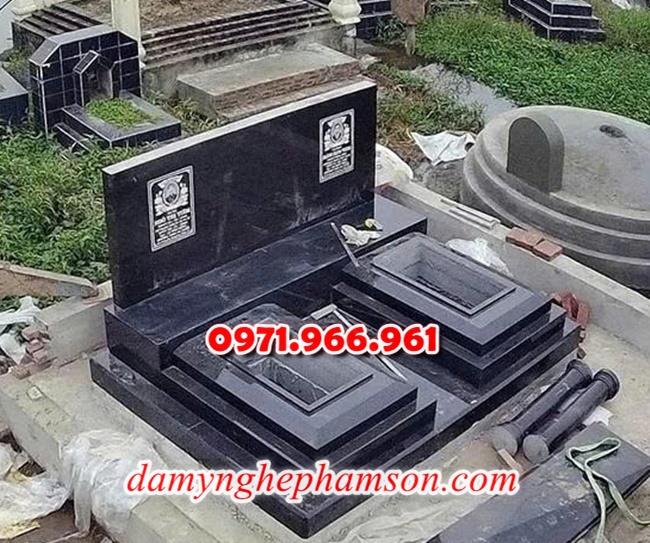 - mẫu mộ ông bà bố mẹ ốp đá granite xanh đen