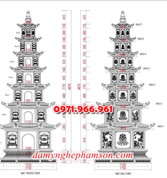Kích thước mộ tháp, kích thước bảo tháp : Tùy theo nhu cầu, và yêu cầu của khách hàng nhưng kích thước bảo tháp lấy theo phong thủy kích thước lỗ ban 38,8 cm