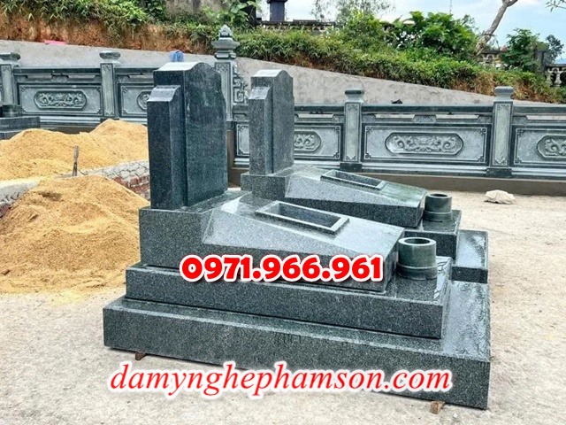 - mẫu mộ ông bà bố mẹ ốp đá granite xanh đen