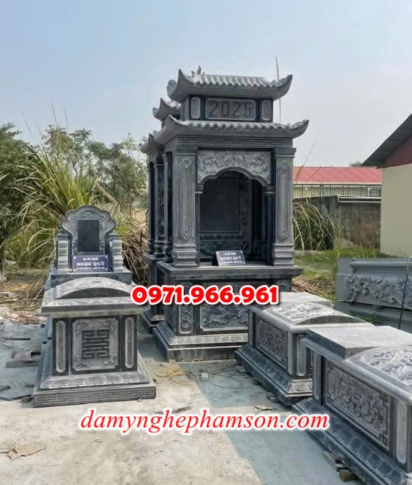 - mẫu mộ ông bà bố mẹ ốp đá granite xanh đen