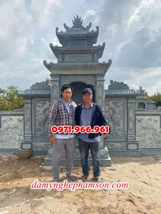 - xây ốp mộ đá tự nhiên chạm khắc hoa văn