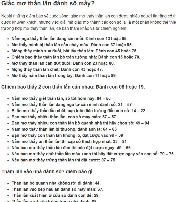 - Nghe tiếng thằn lằn kêu:63. Xem thằn lằn săn mồi:81. Thấy tường đầy thằn lằn: 95.