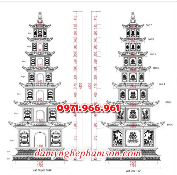 Kích thước mộ tháp, kích thước bảo tháp : Tùy theo nhu cầu, và yêu cầu của khách hàng nhưng kích thước bảo tháp lấy theo phong thủy kích thước lỗ ban 38,8 cm
