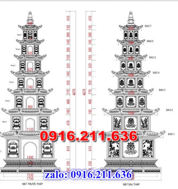 Kích thước mộ tháp, kích thước bảo tháp : Tùy theo nhu cầu, và yêu cầu của khách hàng nhưng kích thước bảo tháp lấy theo phong thủy kích thước lỗ ban 38,8 cm