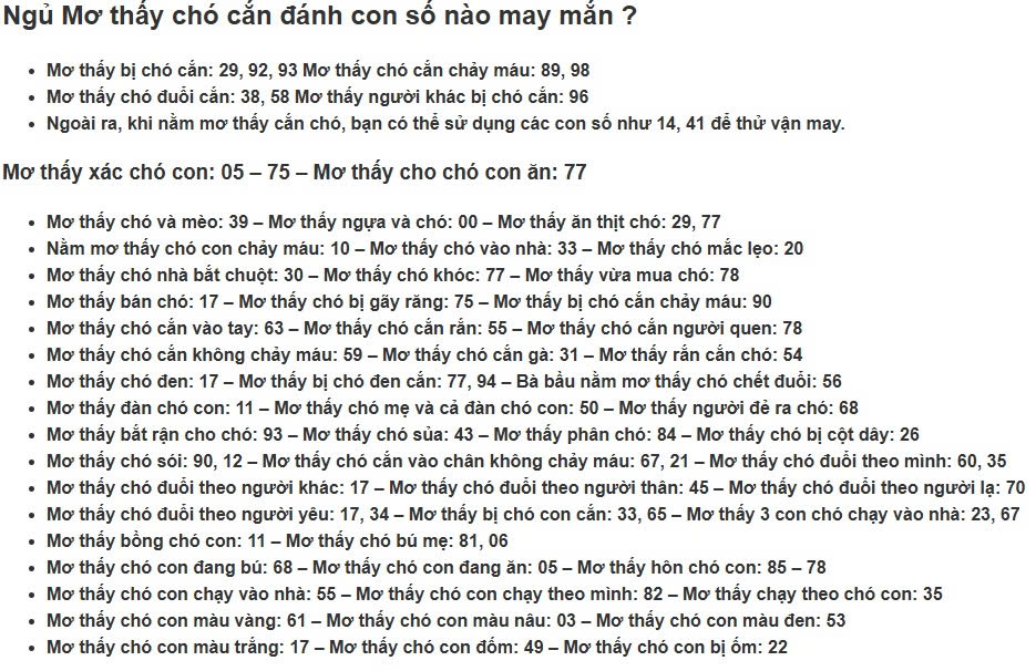 - Ngủ mơ bị chó cắn chảy máu, con số may mắn là: 89 – 98