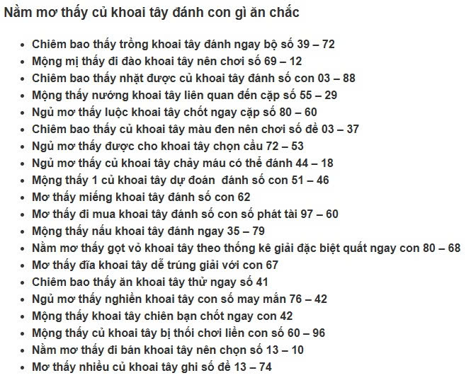 Nằm mơ thấy khoai tây nên đánh số gì?
