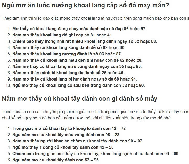 - Nằm mơ thấy khoai lang có sâu: 32 – Nằm mơ thấy khoai lang luộc: 25