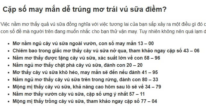 Mơ thấy quả vú sữa bị hỏng, thối: Giấc mơ này mang điềm không tốt, nhưng vẫn có thể quy đổi thành số. Con số thường được nhắc đến là 19 hoặc 91.